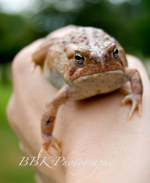 Such cute pictures. The toad reminds me of a time when your bro, Will brought his new pet frog to our house. He and Trav were having a great time with it. Then they decided to give it a ride on our turtles' back. New thing we new Will's frog was our turtles' lunch. Poor lil guy.